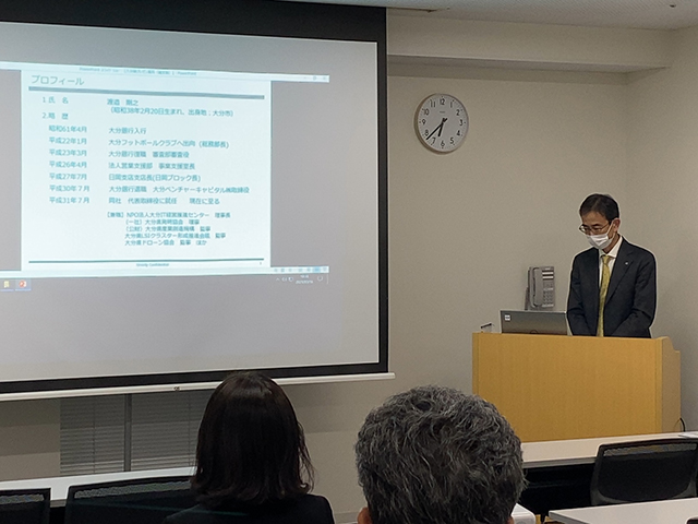 チームラボで活躍しながら竹田市に移住して竹田町ホテルを展開する馬渡氏を講師にお招きしてそれぞれの事業展開や今後の活動についてのお話をお伺いしました。